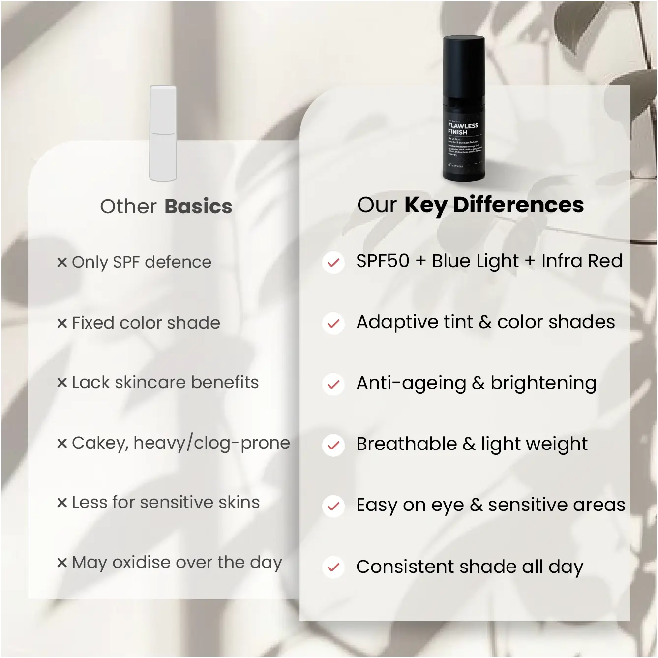Ultra-light SPF50 defends skin daily without residue, heaviness, or irritation.