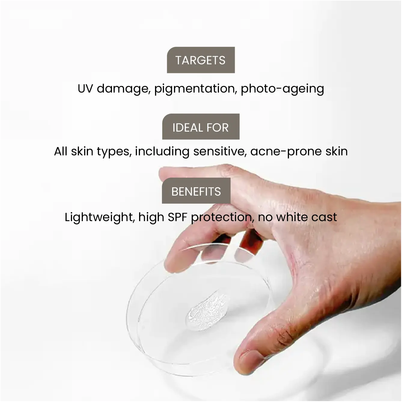 Evens tone and protects with breathable SPF50 while boosting natural skin radiance.
