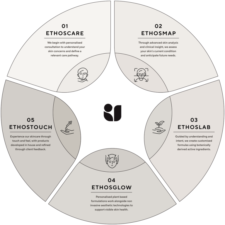 Aligned with the skin’s natural biology, our ecosystem guides individuals through non invasive, plant-based pathways that adapt across life stages and changing conditions. Every component works together within a structured yet personalised system.