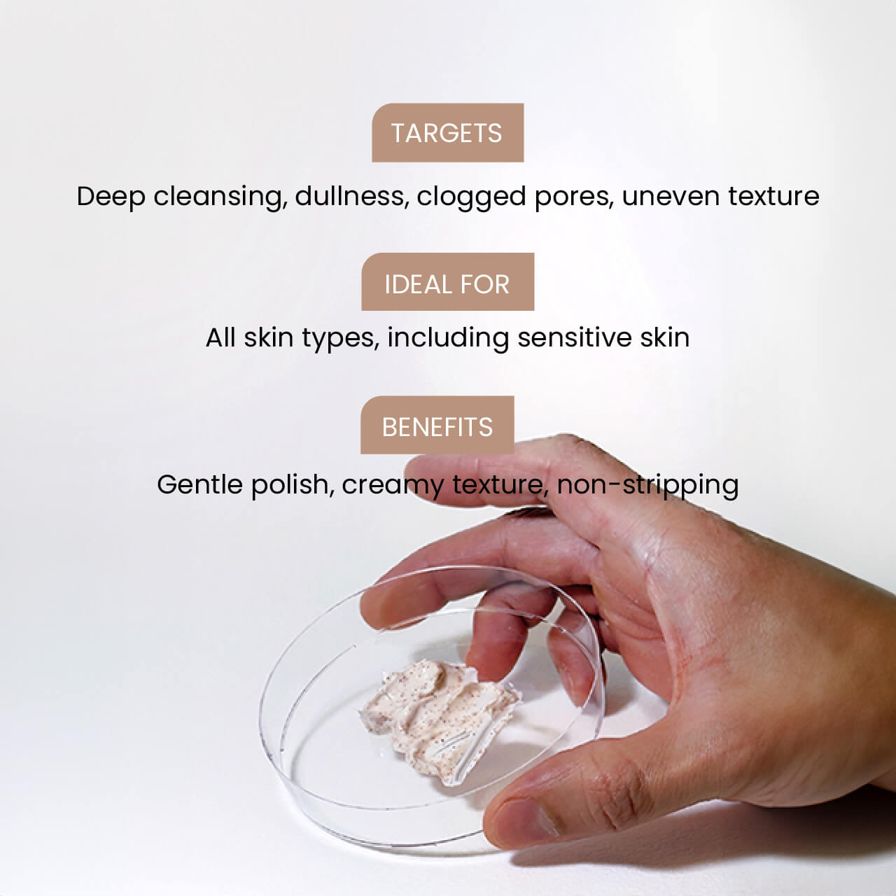 Polish away daily grime, surface bacteria, clogged pores, excess oil, flaky skin and dullness with this creamy exfoliant for all skin types including sensitive. Gently lifts buildup, dead skin cells, and trapped impurities to refine texture, improve tone and restore clarity. Leaves skin smooth, soft and ready for your next skincare steps.