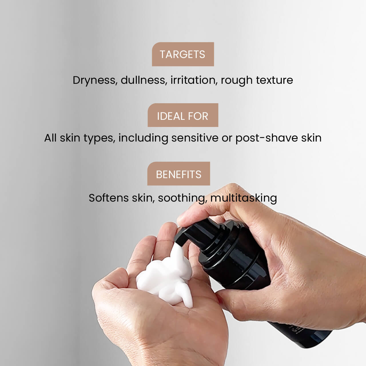 A lightweight mousse cleanser that lifts away impurities, sunscreen, and light makeup without disrupting your skin’s balance. Plant-based and pH-balanced, it calms redness, hydrates, and softens even the most sensitive skin. Doubles as a soothing shaving foam for both face and body, leaving your skin clean, calm, and comfortably smooth after every wash.
