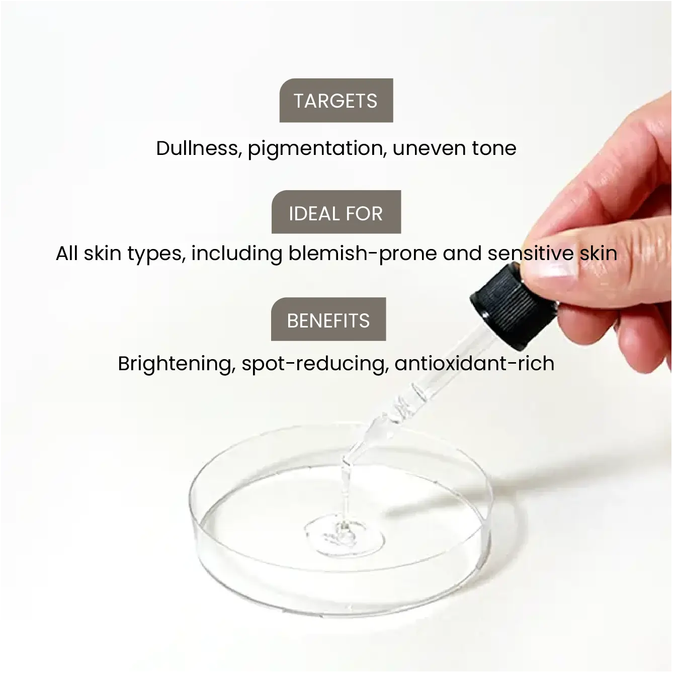 Firms, hydrates, and evens tone to fight early signs of ageing and boost skin glow.
